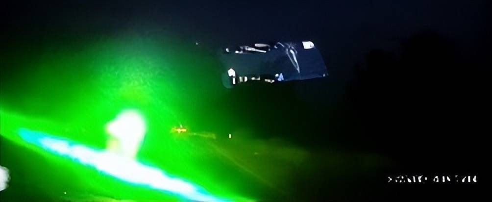 申先生车辆在道路上行驶时,其左前方的对向车道有一辆开着远光灯的车辆不断靠近。记者看到,这辆车在视频中呈现为移动的“光团”,看不清车子的外观。与此同时,一道绿色光源从车内射出。